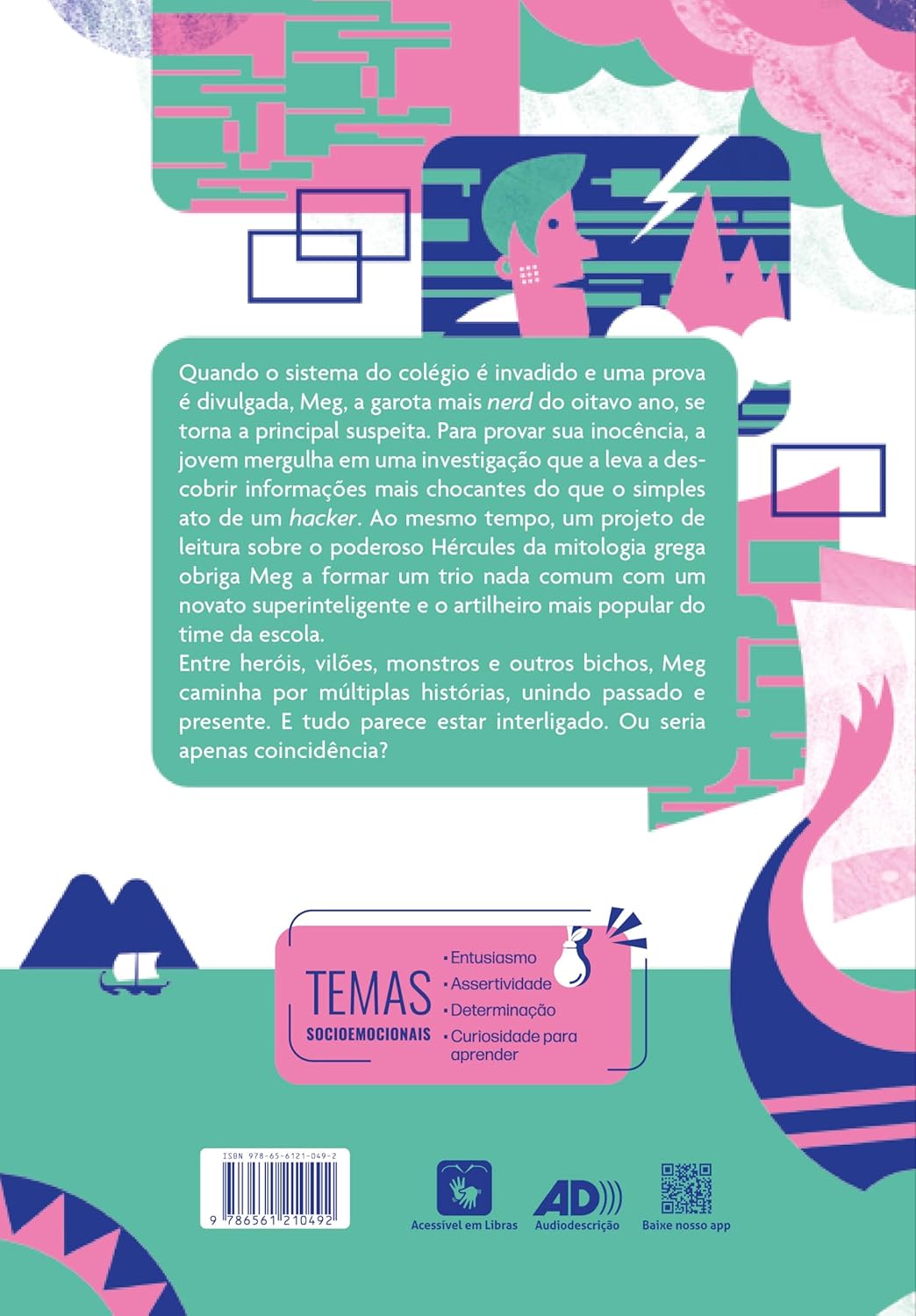 Quando o sistema do colégio é invadido e uma prova é divulgada, Meg, a garota mais nerd do oitavo ano, se torna a principal suspeita. Para provar sua inocência, a jovem mergulha em uma investigação que a leva a descobrir informações mais chocantes do que o simples ato de um hacker. Ao mesmo tempo, um projeto de leitura sobre o poderoso Hércules da mitologia grega obriga Meg a formar um trio nada comum com um novato superinteligente e o artilheiro mais popular do time da escola. Entre heróis, vilões, monstros e outros bichos, a protagonista desse livro caminha por múltiplas histórias, unindo passado e presente. E tudo parece estar interligado. Ou seria apenas coincidência?