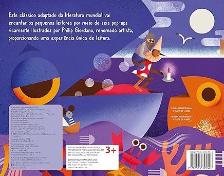 "As Aventuras de Pinóquio" ganha nova vida nesta adaptação ilustrada por Philip Giordano e traduzida por Jim Anotsu. Com seis incríveis pop-ups, esta edição convida os pequenos leitores a redescobrir o clássico da literatura mundial em uma experiência de leitura visualmente deslumbrante e cheia de magia.