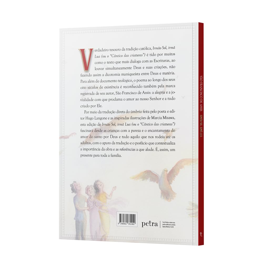 Por meio da tradução direta do úmbrio feita pelo poeta e editor Hugo Langone e as inspiradas ilustrações de Marcia Misawa, esta edição de Irmão Sol, Irmã Lua (ou o Cântico das Criaturas) encantará desde as crianças com a pureza e o encantamento do amor do santo por Deus e tudo aquilo que nos rodeia até os adultos, com o apuro da tradução e o posfácio que contextualiza a importância da obra e as referências a que alude. É, assim, um presente para toda a família.