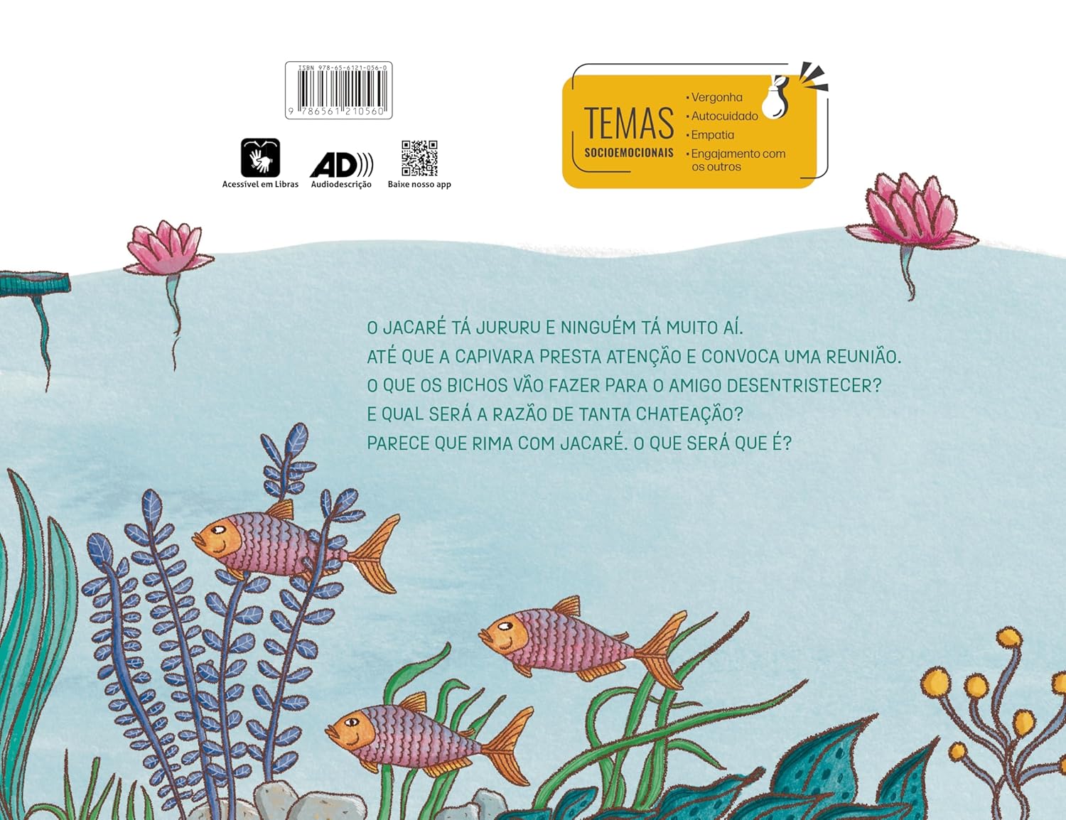 Jarbas, o jacaré, está bem jururu e deixou a bicharada encafifada, qual seria o motivo? Depois de muita conversa para fazer planos de como animar o Jarbas, a turma descobre um segredo que muda tudo. Com texto bem-humorado e ilustrações ricas em detalhes engraçados, essa história vai divertir as crianças do começo ao fim.