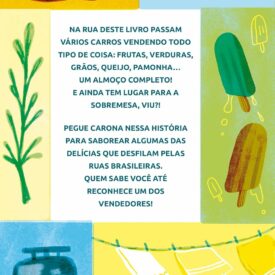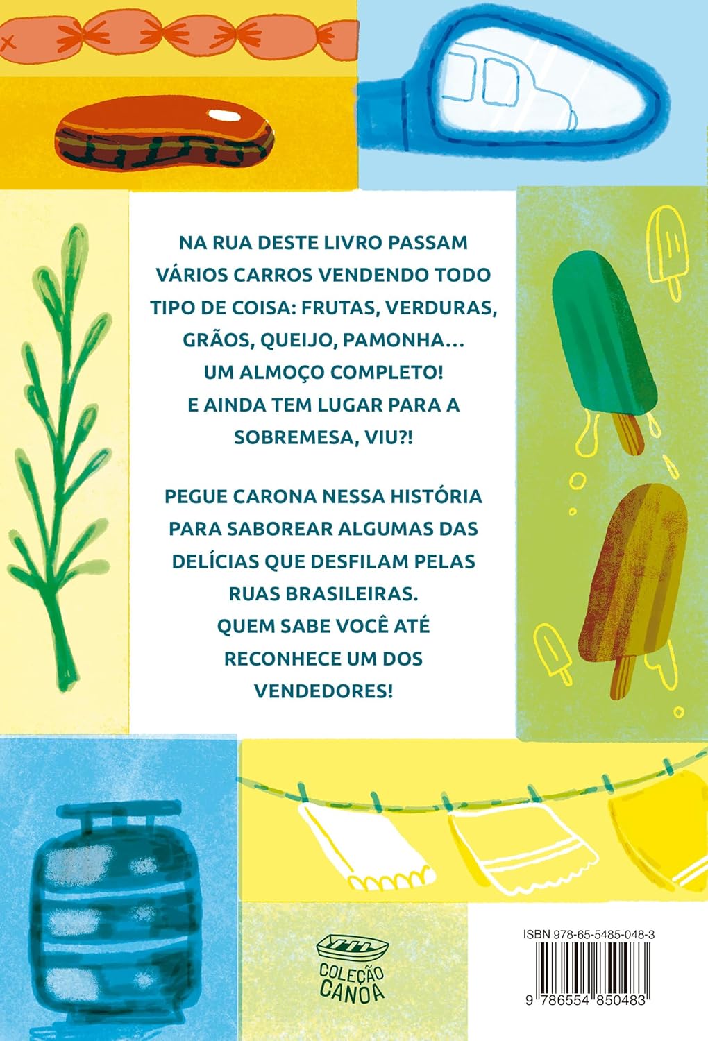 Nessa história, pequenos e grandes leitores vão poder saborear as coloridíssimas ilustrações de algumas das delícias que desfilam pelas ruas brasileiras. E uma surpresa aguarda os leitores mais atentos, que vão reparar que, nas pistas ao longo da história, é possível descobrir que os vendedores são irmãos ― e a mãe deles é uma vendedora muito especial!