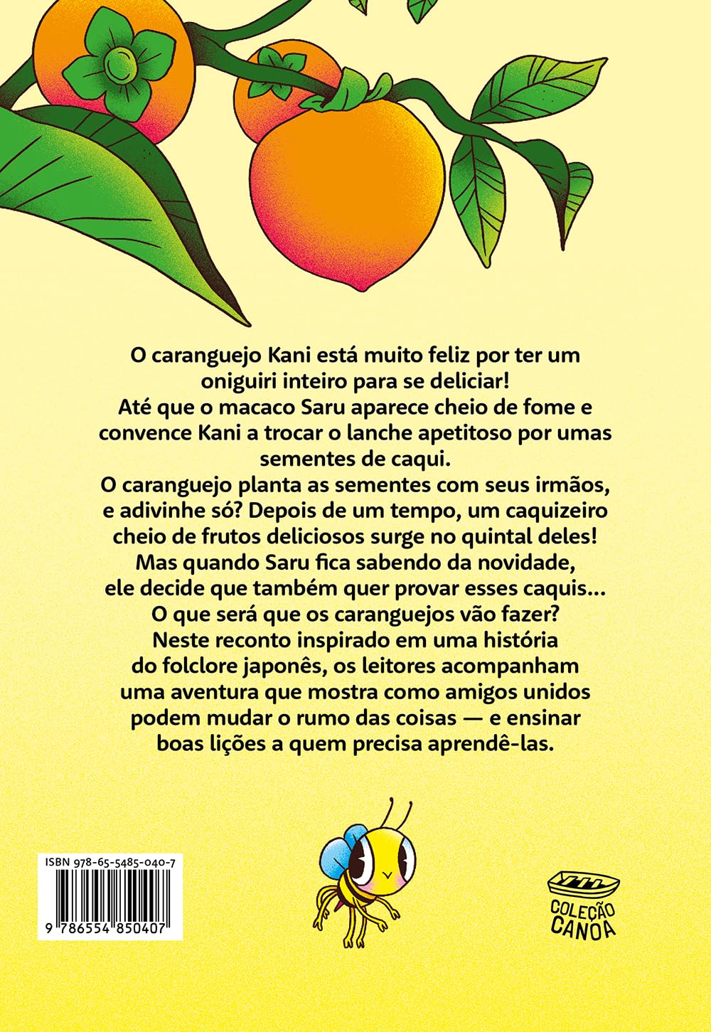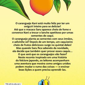 O caranguejo planta as sementes com seus irmãos, e adivinhe só? Depois de um tempo, um caquizeiro cheio de frutos deliciosos surge no quintal deles!