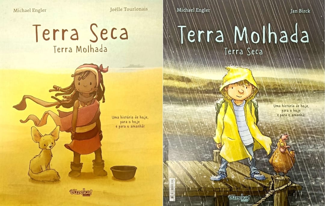 Em Terra Seca, Terra Molhada / Terra Molhada, Terra Seca, Michael Engler e Joëlle Tourlonias apresentam duas histórias que se entrelaçam em um livro único, mostrando como extremos da natureza podem ensinar sobre perseverança, solidariedade e amizade.
